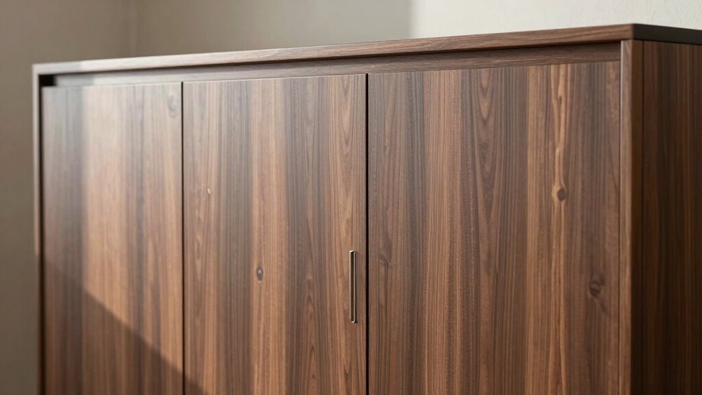 For cabinet reveals, materials like plywood, MDF, and solid wood work best. They offer great reveal aesthetics and guarantee proper reveal alignment. When choosing, contemplate durability and finish; a smooth surface enhances the overall look. You’ll want to evaluate how each material interacts with light and texture, as this can impact the visual appeal. Don’t forget to match your reveals with the overall design to create a cohesive look!