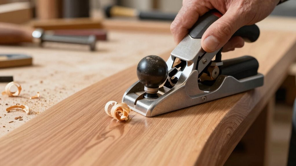 Ever find yourself pressed for time but still needing smooth, rounded edges? Using a plane is the quickest way to achieve that, especially when working with softer materials or edge grain. When material hardness is low, a plane removes material rapidly and cleanly, saving you effort and time. It’s ideal for quick rounds on edges where precision isn’t critical. If you’re working with hardwoods or dense materials, a plane can still be effective, but it may take longer. Relying on a plane for edge grain helps prevent uneven results that sandpaper might cause, especially when speed is your priority. In these situations, the plane’s efficiency makes it the best choice for rounding edges quickly without sacrificing too much control.