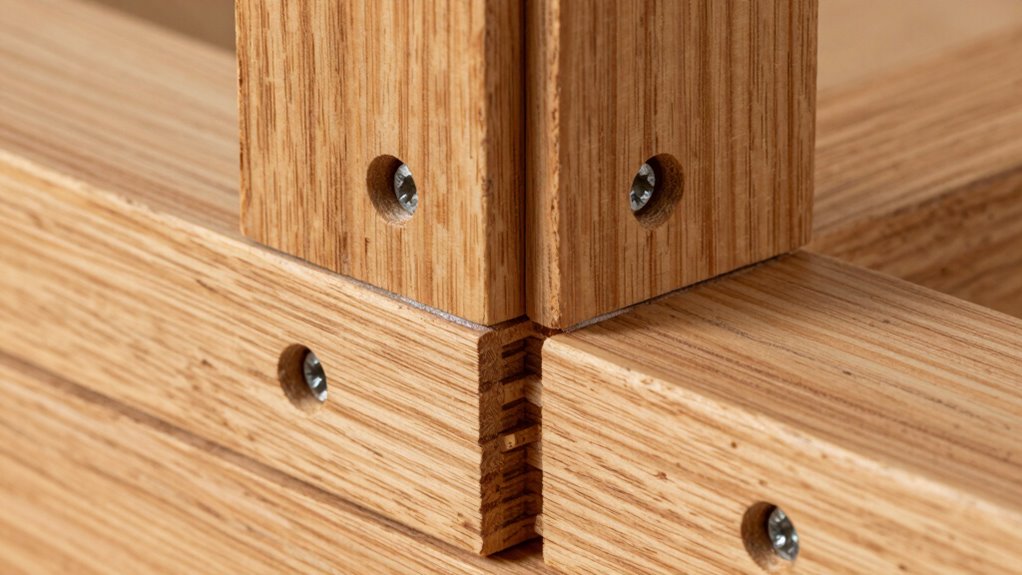 You might worry that grain direction complicates pocket hole placement, but it actually enhances joint stability when you follow proper positioning. Align your pocket holes perpendicular to the grain orientation to prevent splitting and ensure strong joints. Ignoring grain flow risks weakening the structure, so paying attention to grain direction helps you build furniture that’s both durable and visually appealing. Trust your instincts and follow these rules for the best results.