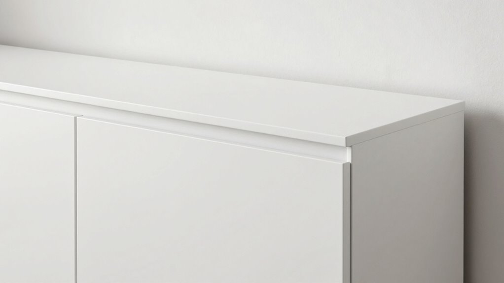 Achieving a seamless look when concealing stopped dados relies on strategic placement techniques that draw attention away from the joint. Position cabinet hardware, like handles and knobs, near the joint to divert focus. Incorporate decorative accents such as moldings or trim at the edges to mask the seam naturally. Placing these elements thoughtfully ensures the eye is drawn to the hardware or embellishments rather than the stopped dado. Additionally, align decorative accents precisely to cover the joint, creating a unified appearance. Keep in mind that strategic placement of hardware and accents isn’t just functional but also enhances aesthetic appeal. By carefully planning their placement, you make the stopped dado virtually invisible, achieving a clean, professional finish that hides the groove effectively.
