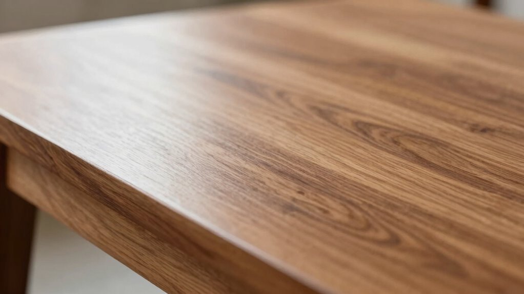 You don’t need to repeat the raising process multiple times if you achieve a consistent grain texture after the first round. Focus on proper sanding and finishing techniques to guarantee even grain raising, which helps your stain absorb uniformly. If the surface feels rough or uneven, then repeat the process. Ultimately, maintaining good grain consistency is key to a smooth, glass-like finish, making additional raising unnecessary in most cases.
