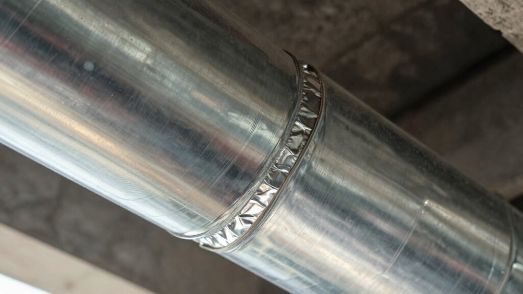 When ducts are incorrectly sized, your HVAC system doesn’t deliver airflow as intended, which can substantially reduce efficiency. Oversized ducts create too much resistance, causing the blower to work harder and increasing energy bills. Undersized ducts restrict airflow, making your system work overtime to reach the desired temperature. The duct material also plays a role—rigid materials like metal tend to conduct heat, affecting performance, while flexible ducts may sag or kink, further reducing airflow. Proper installation techniques ensure ducts are correctly sized and sealed, preventing leaks that waste energy. Additionally, duct sealing is crucial to minimize air leaks and maintain optimal airflow. Poorly fitted or improperly sized ducts force your system to operate inefficiently, leading to higher energy costs and uneven heating or cooling. Proper duct sizing and installation are essential for ideal airflow and lower energy bills. Correct system design is vital to ensure ducts meet the specific airflow requirements of your space.