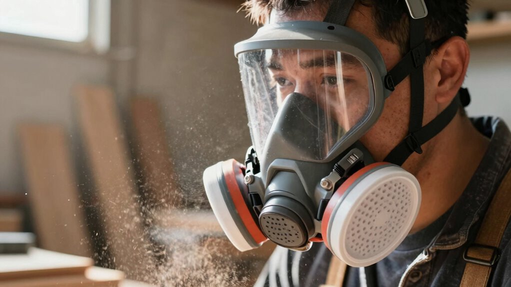 Ever wonder when a simple mask isn’t enough and you need a respirator instead? It depends on the filtration efficiency of your mask. A basic cloth or surgical mask offers limited protection, especially against fine dust particles. When working with hazardous dust, you should choose a mask with a high-quality filter material, designed to trap smaller particles. Keep in mind that mask lifespan affects performance; a worn-out or saturated mask won’t protect you properly. Consider these factors: