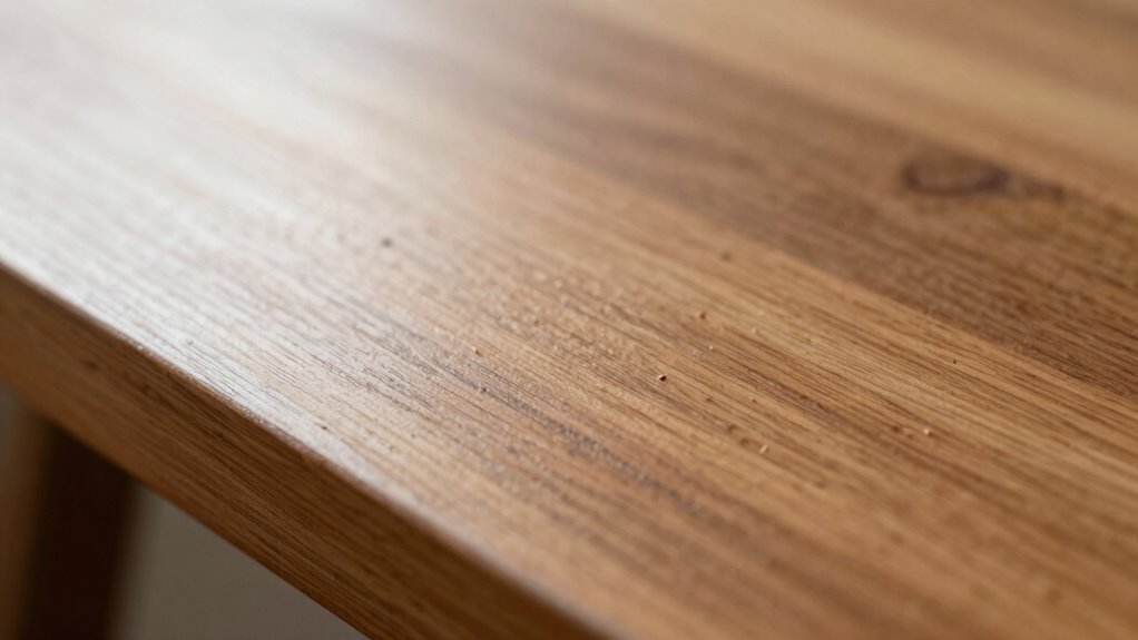 Before attempting to remove dust nibs, proper preparation of your surface is vital to prevent stripping or damaging the existing finish. Start by cleaning the area thoroughly with a damp cloth to remove dust and dirt. Next, lightly inspect the finish to identify areas needing touch-up or smoothing. Using appropriate finishing techniques, avoid aggressive sanding that could strip the finish. Instead, gather fine sanding tools like a soft cloth or very fine-grit sanding sponge. Lightly feather the edges around the dust nibs to create a smooth shift. This preparation ensures you can focus on removing the dust nibs effectively without compromising the integrity of your finish. Properly preparing your surface makes the dust nib removal process safer, easier, and more effective. Additionally, understanding your finish type can help you choose the safest removal methods. Being aware of wood surface characteristics can further guide your approach to surface preparation and care. Recognizing the energy efficiency of your finish can also influence the techniques you select to preserve its durability. Consulting with professionals or referring to architectural solutions can provide additional insights for specific surface types. Incorporating knowledge of wood movement can help prevent future issues related to finish cracking or lifting.