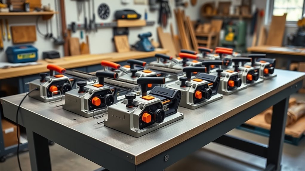 If you’re searching for the best 13-inch thickness planers in Canada for 2026, I can help! I’ve reviewed models with powerful motors, advanced cutterhead technology, and safety features that guarantee smooth, accurate cuts. These planers come with durable build quality, adjustable feed rates, and user-friendly designs perfect for both pros and DIY enthusiasts. Keep going to discover the top options, their key features, and what makes them stand out for your woodworking needs.