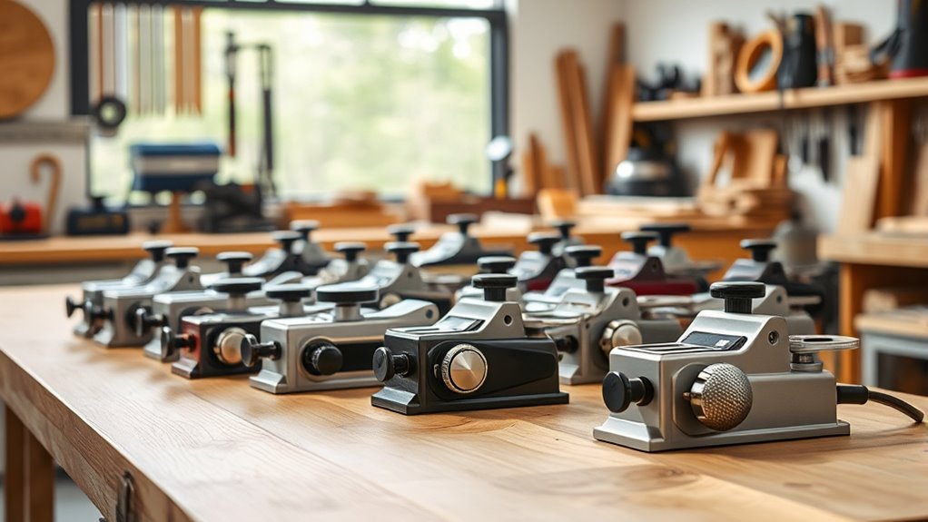 Choosing the right benchtop thickness planer is like finding the perfect tool to craft a masterpiece—each feature sharpens your skills and transforms raw wood into art. I once struggled with uneven boards until I found a reliable planer; now, every cut feels like a brushstroke. Remember, investing in the right machine isn’t just about tools—it’s about shaping your vision. With the right planer, your woodworking dreams will carve their own path to perfection.