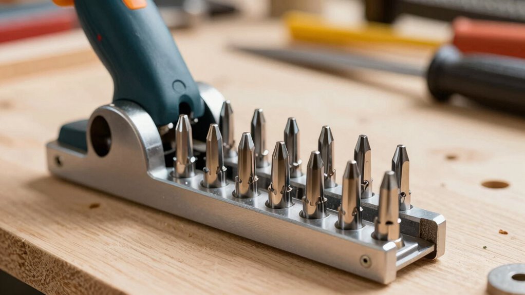 Think of storing spare carbide inserts like safeguarding precious jewels. I keep mine in a dedicated, padded container to prevent damage and corrosion. I also label each slot clearly for quick access and store them in a cool, dry place, away from moisture and extreme temperatures. Regularly checking for wear or corrosion helps me guarantee they’re always ready when I need them, prolonging their sharpness and performance.