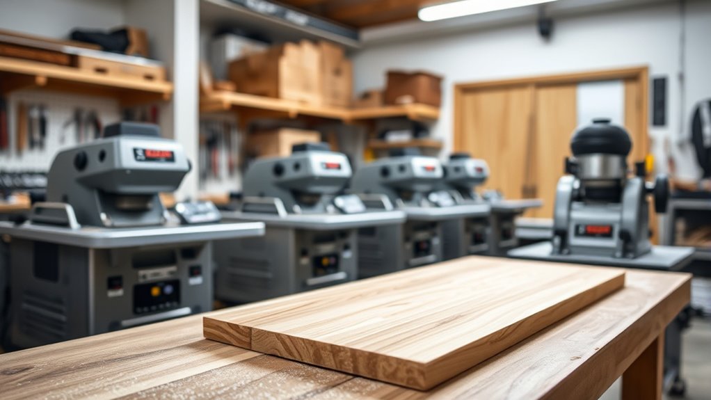 Absolutely, these drum sanders handle hardwoods effectively. I’ve used them on tough oak and maple with great results, thanks to their powerful motors and adjustable settings. They remove material smoothly and evenly, making my projects look professional. Just make sure to use the right grit and feed rate. With proper technique, I’ve found these sanders to be reliable workhorses for hardwoods in my garage workshop.