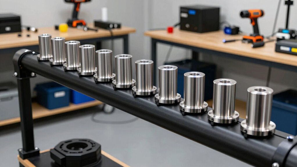 Selecting a dust collection blast gate kit for a small shop means prioritizing material durability and quality to guarantee long-lasting performance. High-quality blast gates are usually crafted from impact-resistant plastics, heavy-duty aluminum, or steel, ensuring they can handle frequent use. Features like closed edges help prevent air leaks, while clog-proof grooves resist debris buildup, maintaining consistent airflow. The choice of materials directly influences the gate’s lifespan, with premium plastics and metals offering resistance to wear, dirt, sawdust, and woodchips over time. Additionally, thicker, well-constructed materials help sustain airtight seals and precise control. Opting for corrosion-resistant, impact-resistant, and temperature-tolerant materials guarantees your blast gates perform reliably in the demanding conditions of a small workshop.