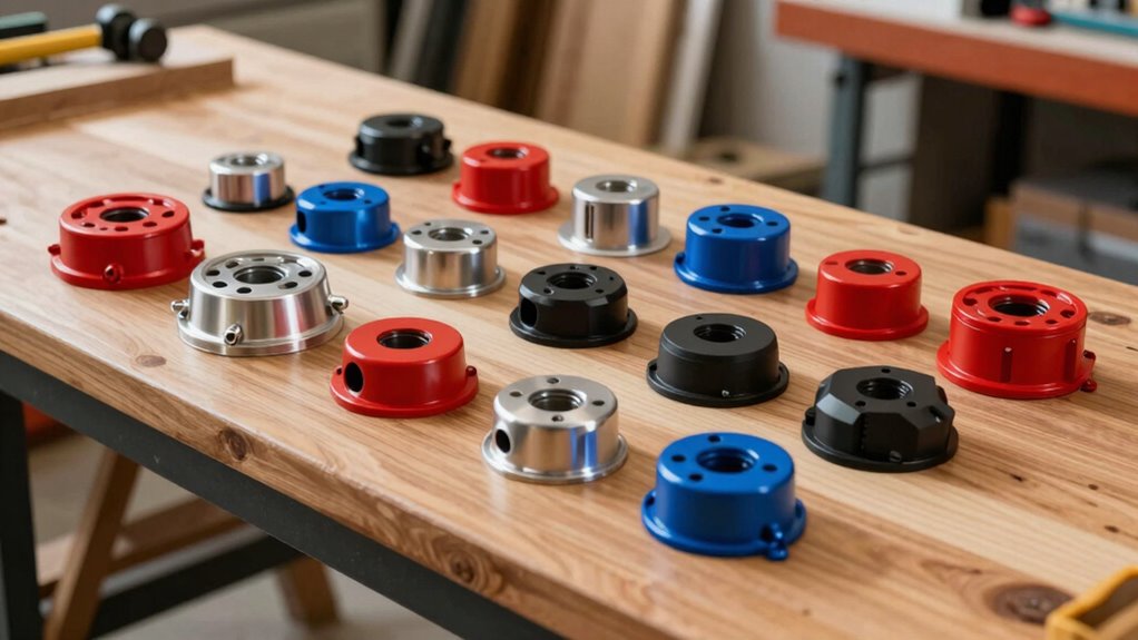 A tight seal is essential for maintaining ideal airflow and system efficiency in your dust collection setup. Properly sealed blast gates prevent air leaks that can considerably reduce suction power and overall performance. Features like closed edges and rubber seals help ensure an airtight connection between the gate and hoses or ducts. When seals are intact, dust and debris stay contained, leading to cleaner workspaces and better air filtration. However, worn or damaged seals can cause leaks, decreasing airflow control and system efficiency. To keep your system running smoothly, regular inspection of seals and gasket components is necessary. Replacing worn seals promptly will help maintain optimal leak prevention, ensuring your dust collection system operates at peak performance and keeps your workspace cleaner and safer.