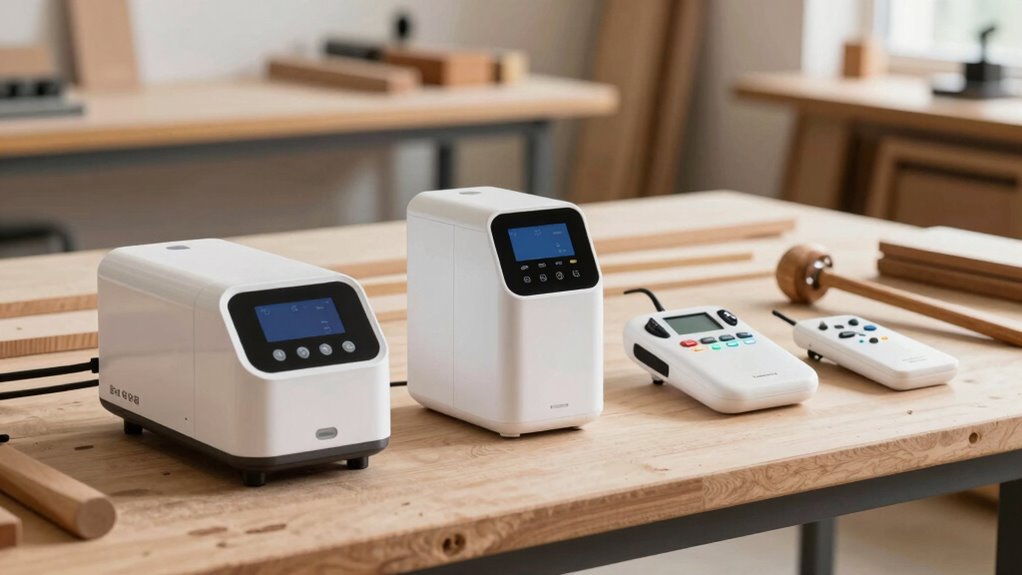 Ensuring safety and proper certification is essential when selecting a remote control system for a dust collector in professional woodworking. I look for systems with UL or UL-listed certification to meet safety standards for electrical devices. It’s important that the switch components are made from flame-retardant materials, like V0-grade plastics, to reduce fire hazards. I also verify that the remote uses UL-certified power cords and connectors for reliable performance and electrical safety. Systems with built-in surge protection are a must to guard against voltage spikes and electrical faults. Additionally, I check for compliance with regional safety standards, such as UL or CSA certifications, to make certain the system meets all relevant regulations. Prioritizing these factors helps me maintain a safe and compliant workshop environment.