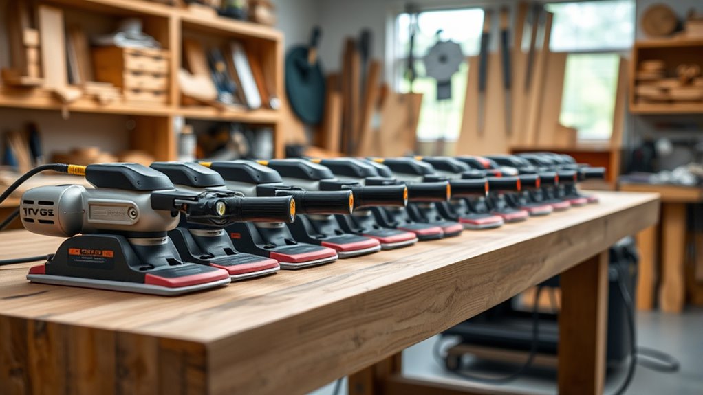 If you’re looking for the 15 best edge sanders for professional woodworking in 2026, I’ve got you covered. From benchtop models like WEN and Bucktool to versatile oscillating and combo sanders from Ridgid, Vevor, and Jet, there are options designed for heavy-duty and precision work. These tools offer power, adjustability, and excellent dust management to meet demanding project needs. Keep going, and you’ll uncover detailed insights to help you choose the perfect sander.