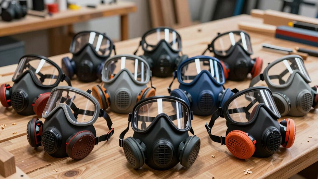 If you’re looking for the best full face respirators for wood finishing in 2026, I’ve compiled a top list featuring models like the 3M 6800, AirGearPro G-750, and North 7600, all certified by NIOSH. These provide excellent protection against fumes, dust, and chemicals, with comfortable, adjustable designs and durable filters. Choosing the right one depends on your specific needs, and if you keep going, you’ll find all the details to make an informed decision.