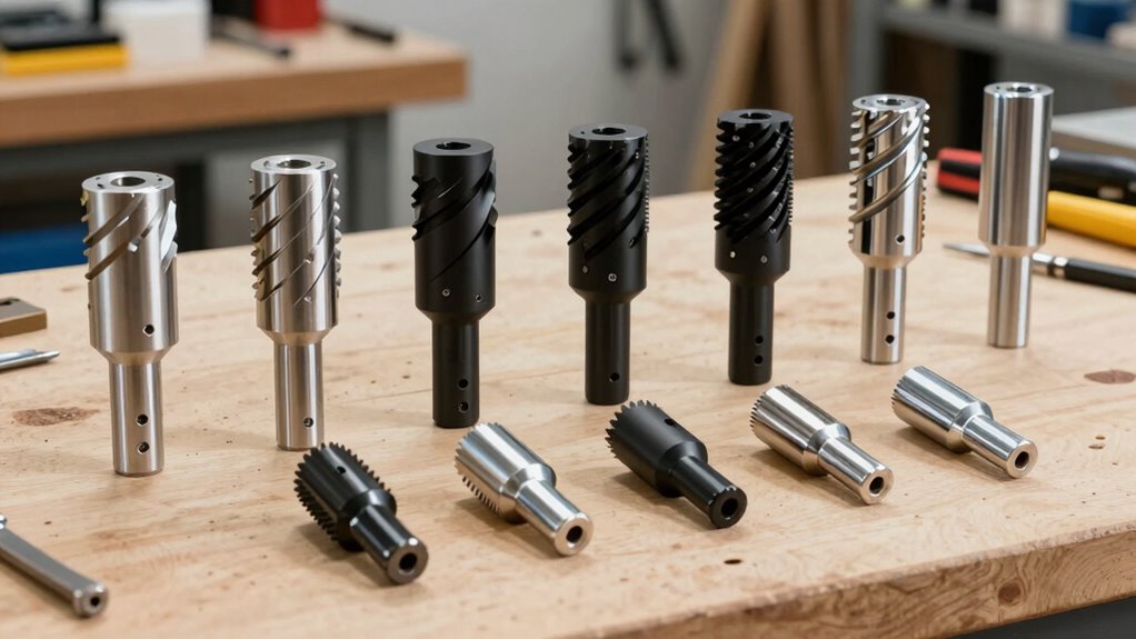 High-quality blade materials like tungsten carbide and high-speed steel are essential for maximizing the performance and longevity of a helical cutterhead retrofit kit. Tungsten carbide inserts are preferred because of their hardness and exceptional wear resistance, often lasting up to 40 times longer than traditional high-speed steel blades. The material choice directly impacts how well the blades maintain their sharpness and produce clean, shear cuts over time. Reversible and indexable blades made from premium materials make it easy to rotate or replace them, reducing downtime and maintenance costs. Investing in blades with superior material quality guarantees consistent finish quality and extends the overall lifespan of your retrofit kit. Prioritizing blade material quality is key to achieving reliable, efficient, and long-lasting jointer performance.