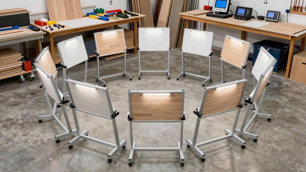 In small workshops where space is limited, portability and storage become essential factors when selecting a panel cutting support stand kit. A lightweight design with foldable features makes transportation easy and quick, saving time and effort. Compact storage options are necessary, allowing the stand to fold into a small size when not in use, which is perfect for tight spaces. Materials like stainless steel or rust-resistant coated iron not only guarantee durability but also make handling easier during movement. Adjustable height and a foldable frame enable fast setup and breakdown, enhancing efficiency in a busy shop. Features such as carrying handles or foldable components improve maneuverability and storage convenience, helping you keep your workspace organized and accessible without sacrificing stability or functionality.