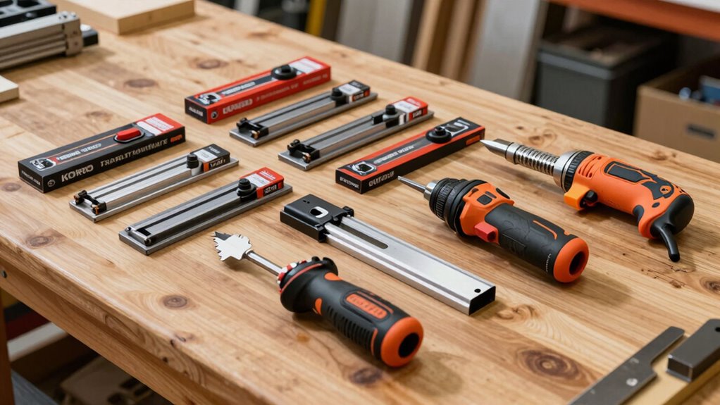 If you’re looking for the 15 best track saw kits in the US for 2026, I’ve found top options that deliver precise cuts, durability, and great value. From versatile guide rails compatible with popular brands like Festool, Makita, and Dewalt to all-inclusive kits with clamps, connectors, and extension rails, there’s something for every project level. If you want to discover which kits fit your needs and budget, keep going—there’s plenty more to explore.