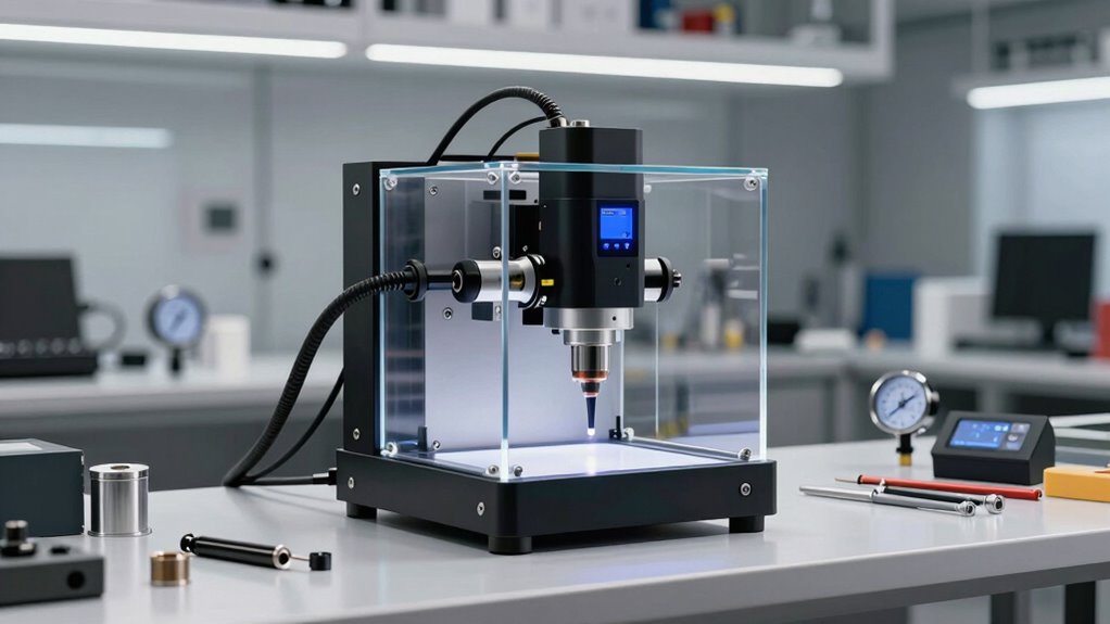 Choosing the right vacuum clamping system starts with ensuring it works well with your shop’s surface materials. I’ve found that compatibility with surfaces like glass, granite, steel, or laminates is essential for a secure hold. The surface needs to be smooth, non-porous, and free of debris, as these factors directly impact vacuum seal strength. I also pay attention to the surface area size and flatness; uneven or porous surfaces can weaken vacuum grip. When selecting a system, I check if the suction cups or bases are designed for my specific surface type to maximize adhesion. Sometimes, additional preparation like cleaning or sealing is necessary to improve vacuum adhesion. Proper surface compatibility makes all the difference in achieving reliable, consistent clamping.