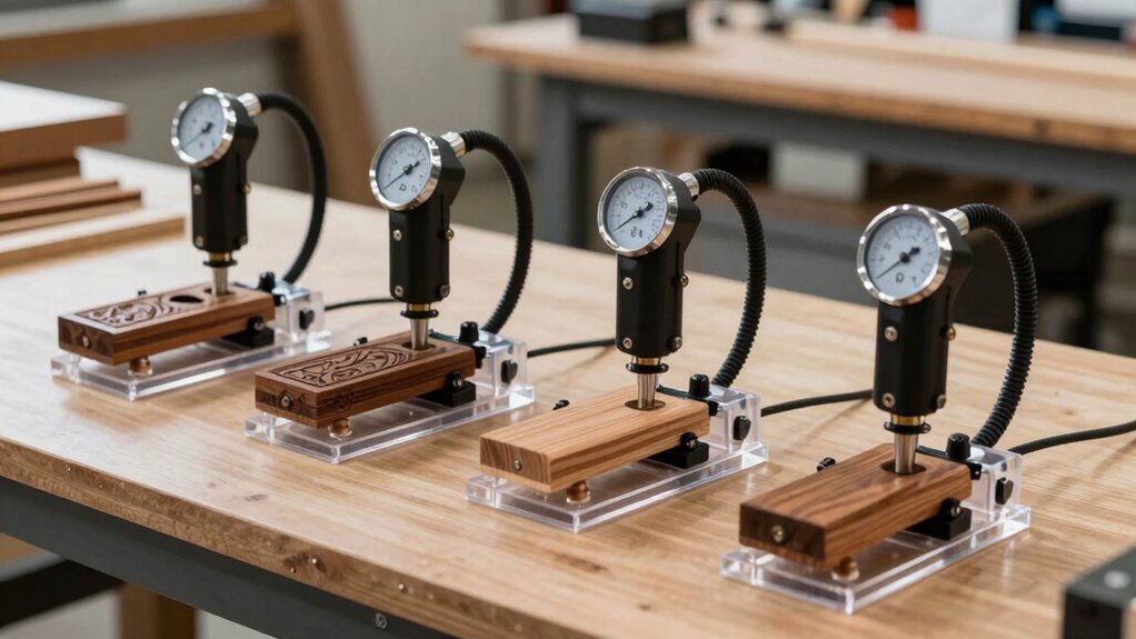 Vacuum power and strength directly impact the reliability of your clamping system during woodworking tasks. The vacuum’s ability to generate sufficient holding force depends on the pump’s capacity and how well the system minimizes leaks. Higher vacuum levels, measured in inches of mercury (inHg), allow you to securely clamp heavier or irregularly shaped workpieces. Consistent vacuum pressure is essential to prevent workpieces from slipping during demanding machining or routing. It also needs to counteract cutting forces, vibrations, and accidental impacts. Using properly rated vacuum components like pumps, manifolds, and fittings ensures you achieve and maintain ideal vacuum power. Without adequate strength, even the most advanced system can fail under pressure, risking damage to your workpiece or safety. Prioritizing vacuum power guarantees dependable, secure clamping in all woodworking operations.