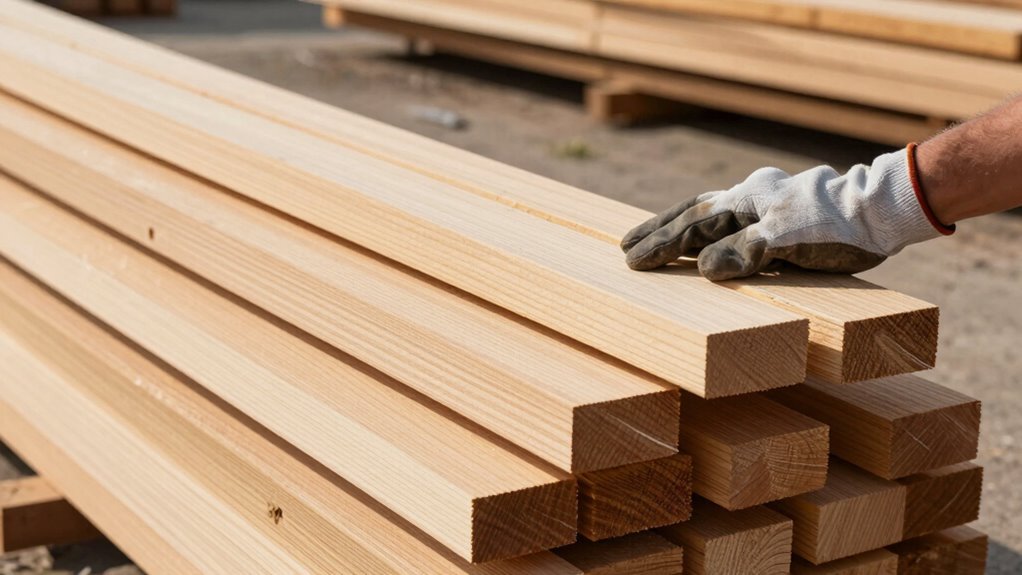Yes, certain grades of lumber are better for straightness. Look for high-grade options within grading standards like Select or #1 Common, which have fewer knots and defects. Lumber classifications help you identify boards with minimal warping tendencies, ensuring a straighter, more stable piece. By choosing boards with higher grades, you increase your chances of getting straight, reliable lumber that’s easier to work with and lasts longer.