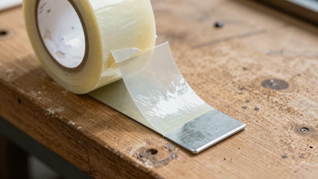 Double-sided tape workholding can provide impressive precision and strong holding power, but these qualities vary depending on your specific application. Adhesive chemistry plays a key role, with some tapes designed for high-strength bonds suitable for detailed machining, while others prioritize easy tape removal. The right tape guarantees your workpiece stays secure during manufacturing, maintaining accuracy. However, if the adhesive isn’t suited to your materials or operating conditions, you risk slipping or damaging surfaces when removing the tape. Additionally, strong adhesives may require careful tape removal techniques to avoid residue or surface damage. Choosing the correct tape involves balancing hold strength with ease of removal, ensuring your process remains efficient without compromising precision or surface integrity.